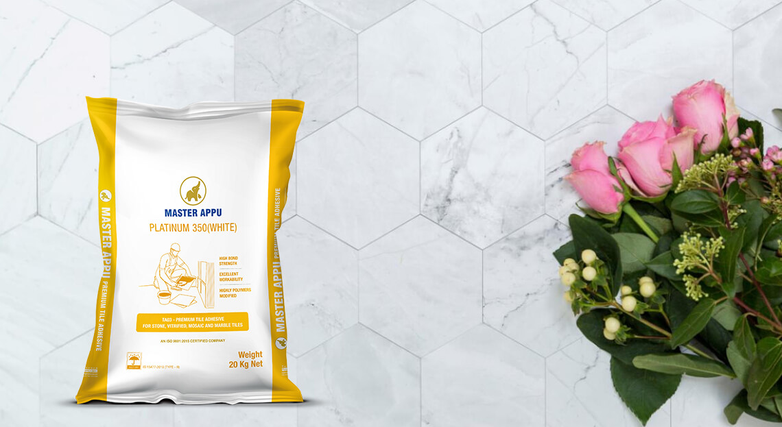 white cement-based high polymer-modified tile adhesive is designed for fixing high-porosity tiles like ceramic/ clay, vitrified, mosaics, marble, natural stone dense, and large-dimension tiles. It contains graded white sand, cement, and polymers, and it is also recommended for tile-on-tile applications.