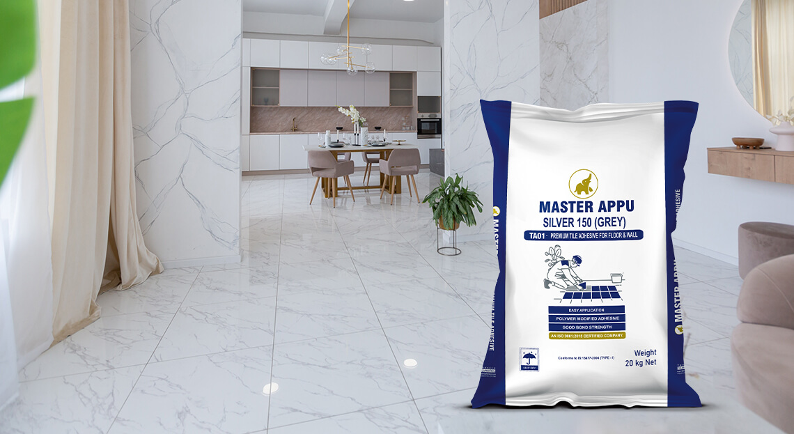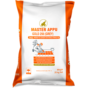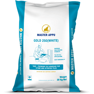 Mix Master Appu Tile Adhesive with approximately 5-6 litres of water for a 20 kg bag using a mechanical mixer for 3-5 mins until a homogeneous paste forms.