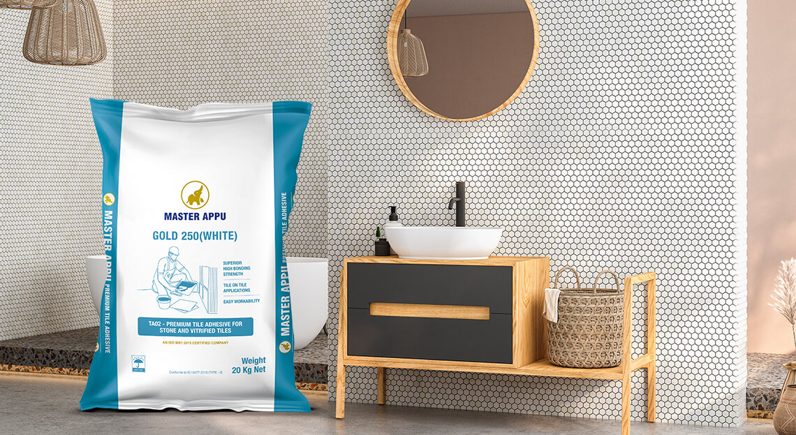 white cement-based high polymer-modified tile adhesive is designed for fixing high-porosity tiles like ceramic/ clay, vitrified, mosaics, marble, natural stone dense, and large-dimension tiles. It contains graded white sand, cement, and polymers, and it is also recommended for tile-on-tile applications.